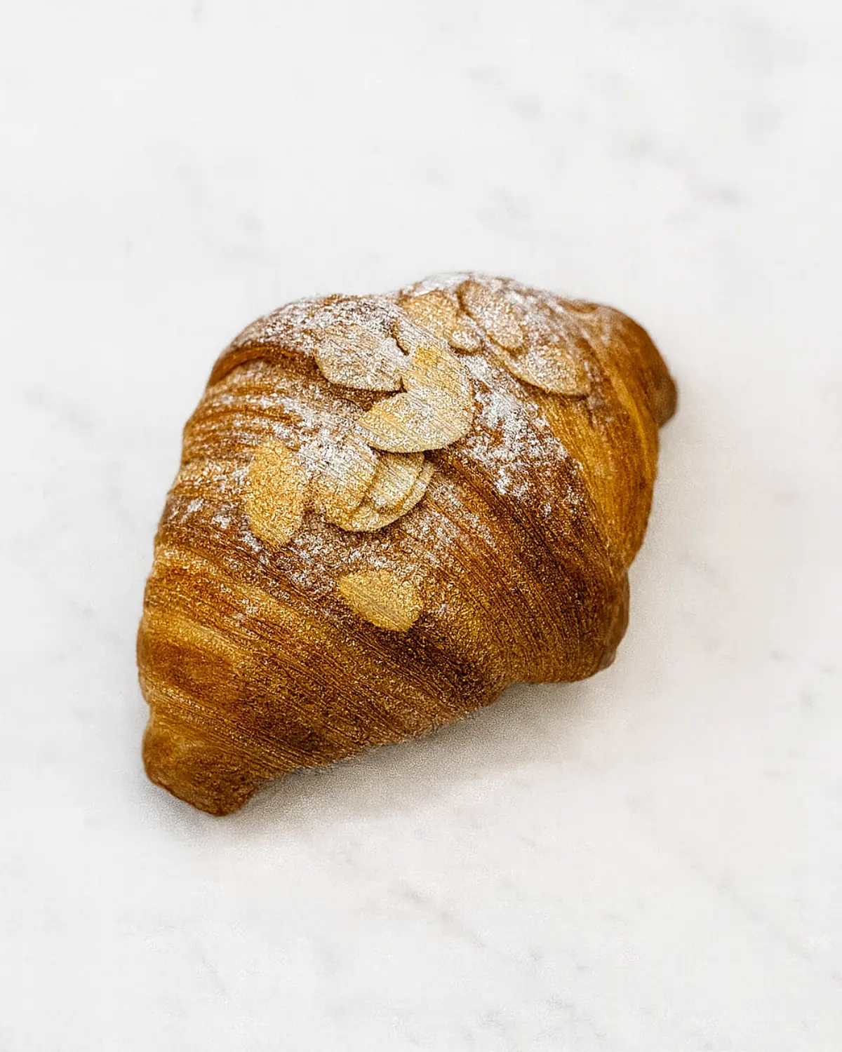 Feuilletage pur beurre garni d’une crème d’amandes fondante et recouvert d’amandes effilées grillées.